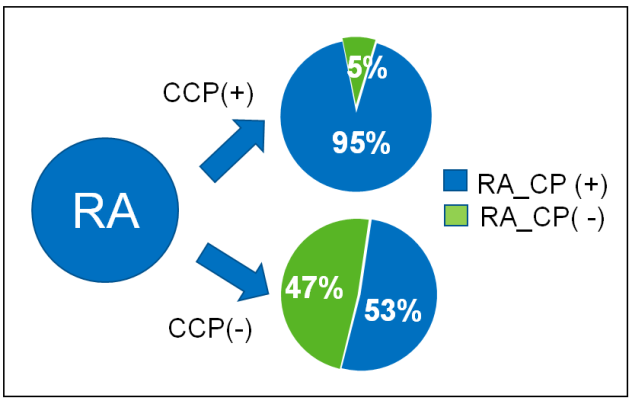 由雷德倍尔海归研发技术团队经过四年的不懈努力,成功突破技术难点,创新研发了RA_CP新标志物,其产品充分体现了国际领先的研发水准。RA_CPTM是特异性RA修饰抗原介导的创新体外诊断技术,在保持了高特异性的前提下,其灵敏度优于进口品牌同类产品。在血清阴性的RA患者人群中,RA_CPTM可检出约50%RA病例,有效降低临床漏诊发生率,显著提高了临床诊断类风湿性关节炎的准确性,是一个临床价值显著,高性能的全新血清学诊断指标。